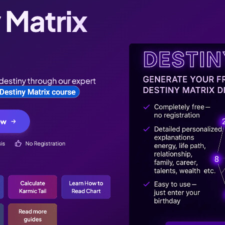 Use Destiny Matrix to Unlock your destiny through sacred numbers - 100% free, instant personal analysis.