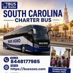 Book South Carolina Charter Bus from Charleston to Greenville for safe, comfortable group travel with modern buses, professional drivers, and easy flexible booking.